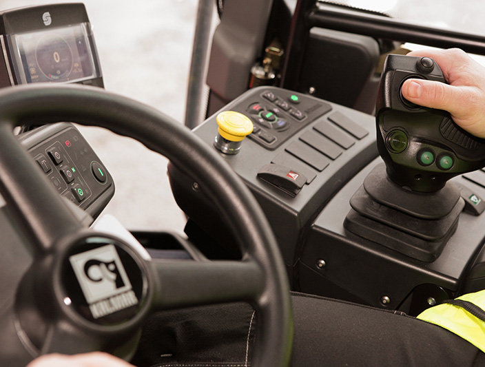 Vi har forbedret operatørens synlighet med et åpent kabin-design for optimalisert sikt i alle vinkler. Smarte profiler og buede vinduer kombineres for å gi eksepsjonelt sterk sikt fremover, diagonalt og bakover. Et utvalg av valgfrie kameraer er tilgjengelige som kan monteres i forskjellige posisjoner på din reachstacker for å forbedre operatørens synlighet i sitt arbeidsmiljø.