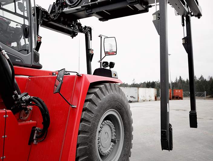 I tillegg er hver EGO Reachstacker-kabin utstyrt med et justerbart sete, vindusviskere med høy kapasitet, en ergonomisk utformet joystick og ratt, komfortpedaler for å redusere belastningen på beina, et klimapakke for å holde operatørene komfortable, og en justerbar arbeidskonsoll og et intuitivt brukergrensesnitt for å gjøre livet enklere.