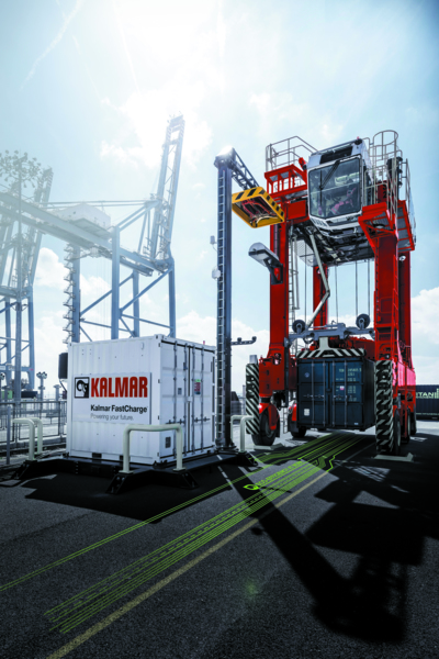"From our experiences in electrifying horizontal container transportation, it's clear that charging of onboard batteries has to be quick and needs to take place along the natural route of the machine. This maximises machine availability and allows flexible task scheduling," says Juho Leskinen.